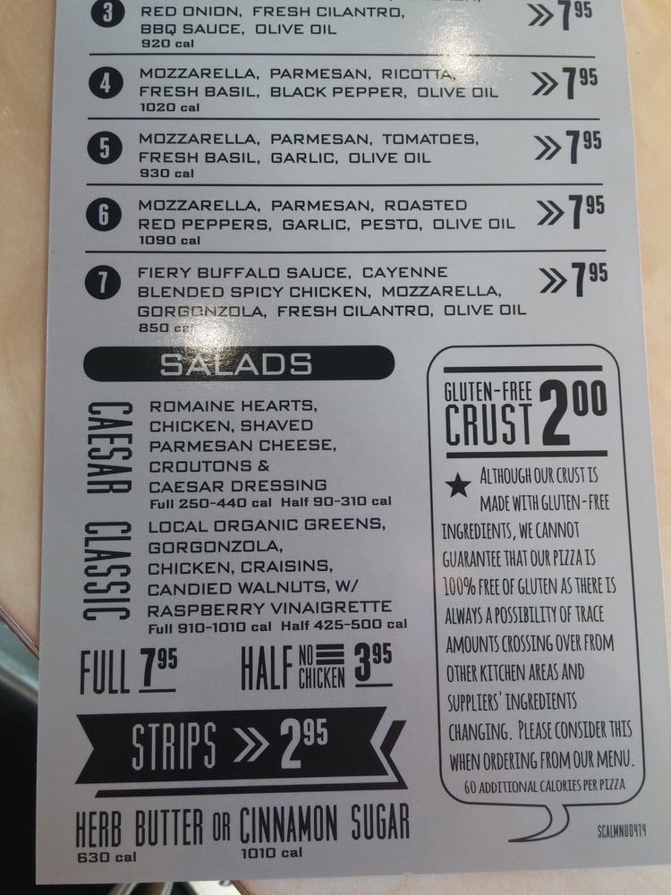Get your gains! Perfect for the Protein Seeker, this pizza is made with Chicken Base, House Red Sauce, Shredded Mozzarella, Red Onion, Roasted Red Peppers, Green Peppers, Pepperoni, Canadian Bacon Oregano. This small but mighty base is glutenfree and made with all natural white meat chicken, cheese and eggs.